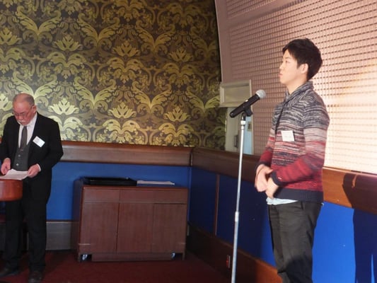 これに対し、4月から読売新聞大阪本社に記者職で就職が決まっている早稲田大大学院の門間圭祐さんと、共同通信の記者職で入社する東洋大の相澤一朗さんがそれぞれ謝辞を述べた。