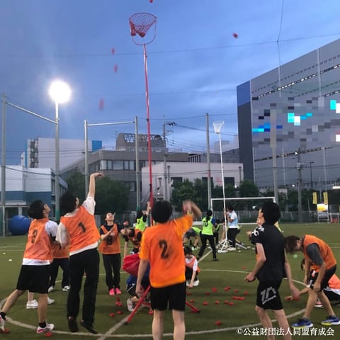 男女混合で6つのチームを編成し、チーム対抗で飴玉探し、気配切り、玉入れ、借り人競争、ドッジボール、リレーを行いました。さらに、男女対抗戦として大玉送りや綱引きも楽しみました。